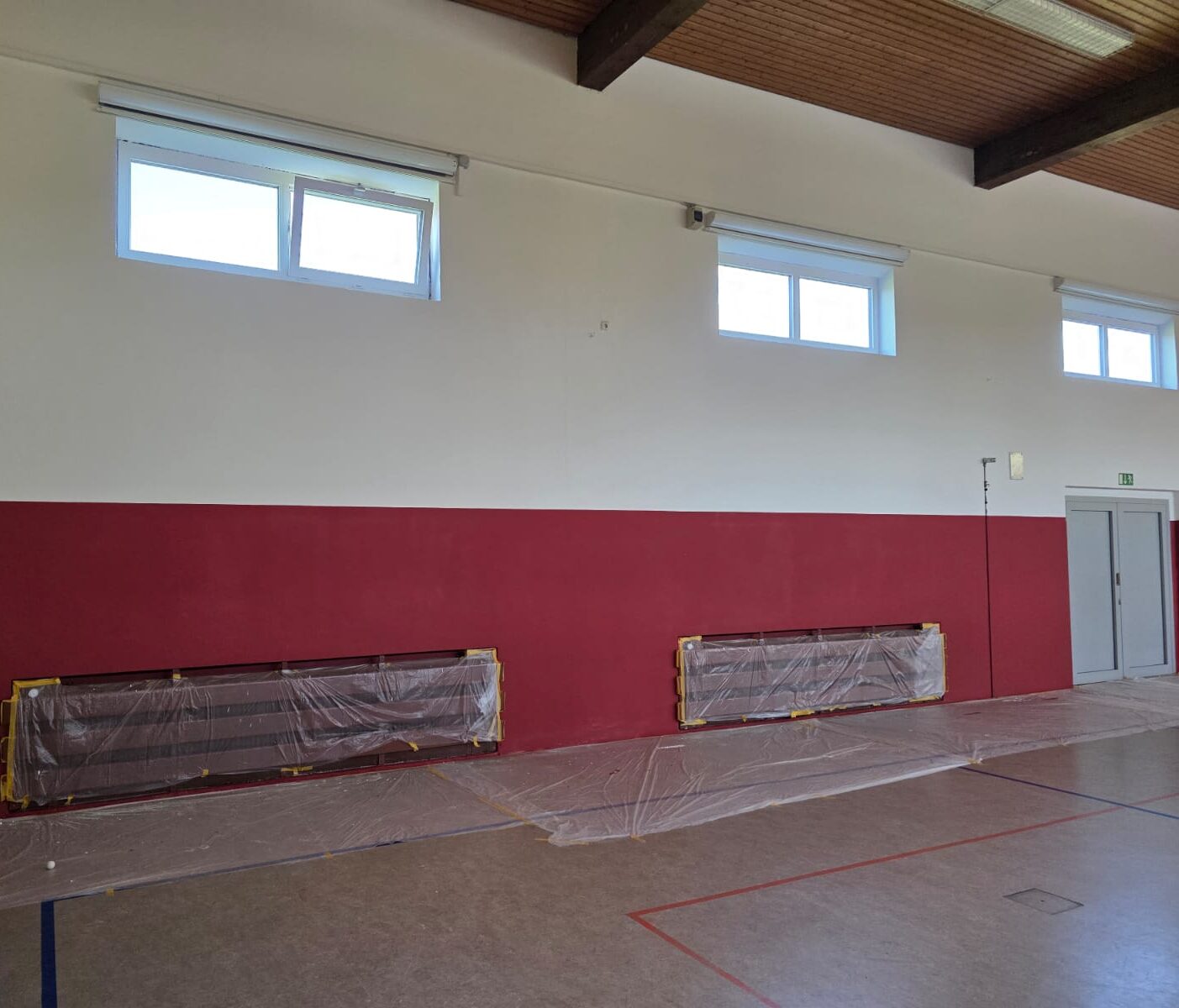 Gestern gab’s frische Farbe für die durch den Fenstereinbau mit in Leidenschaft gezogenen Innenwände – die Halle erstrahlt jetzt in neuem Glanz!